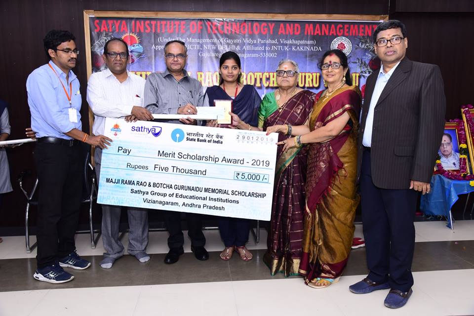 Merit scholarship awards 2019 were distributed to SITAM students . Chief Guests for the function are Smt Eswaramma , mother of Sri Botcha satyanarayana garu, chairman, satya group of Institutions and Sri Majji Surya Bhagavan, Dist Cooperative officer (West Godavari district). Congratulations to all winners.