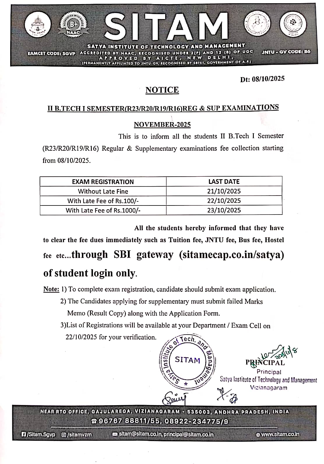 IV B.Tech II SEM (R19/R16) Supplementary Exam Notification Oct-25